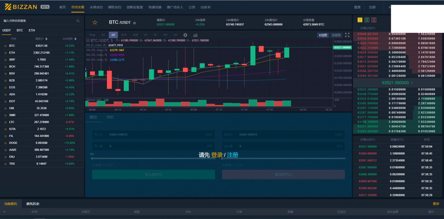 4. 币币交易(支持限价委托、市价委托,二次开发可加入其它委托模式)