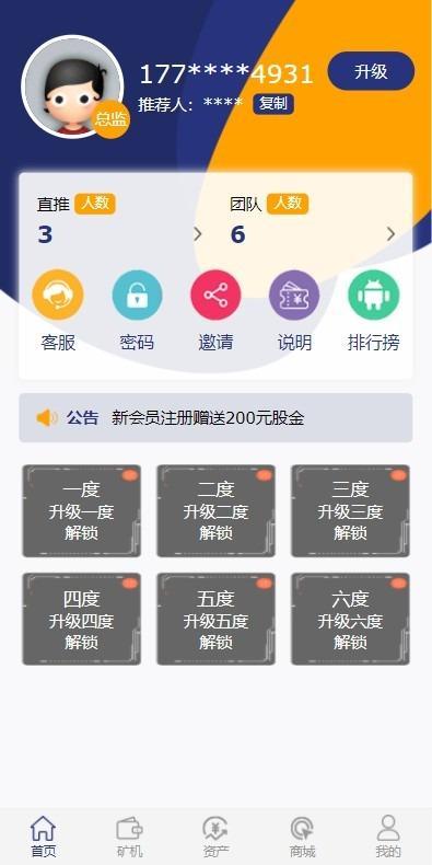 V1直推5个神6永久分红1%