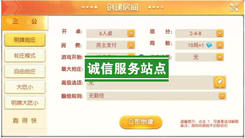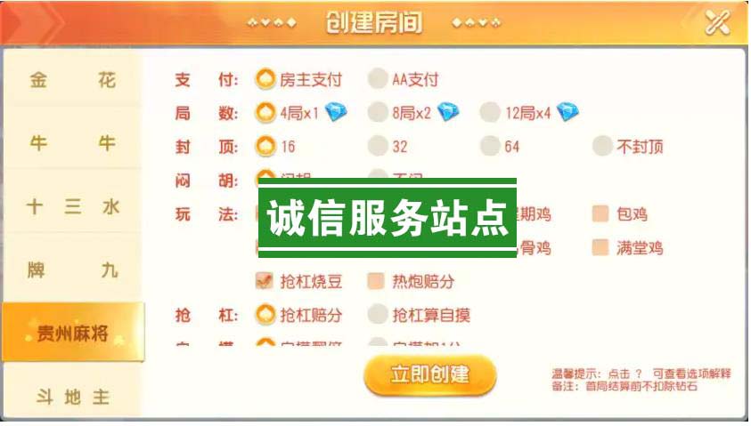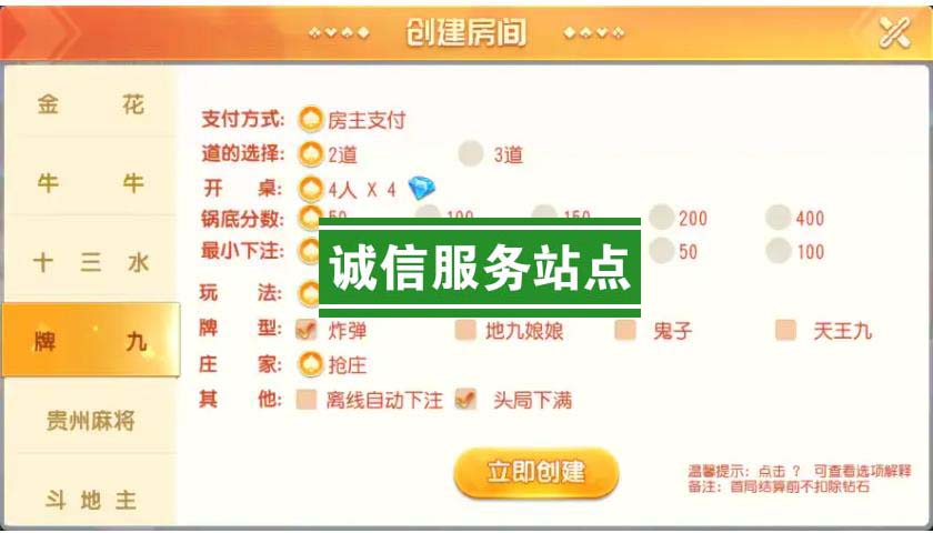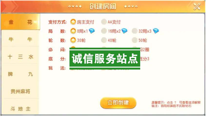内含游戏:炸金花、牛牛、十三水、牌九、贵州麻将、斗地主、三公、跑得快、三加一、填大坑、五十K、跑胡子、红中麻将、血战麻将