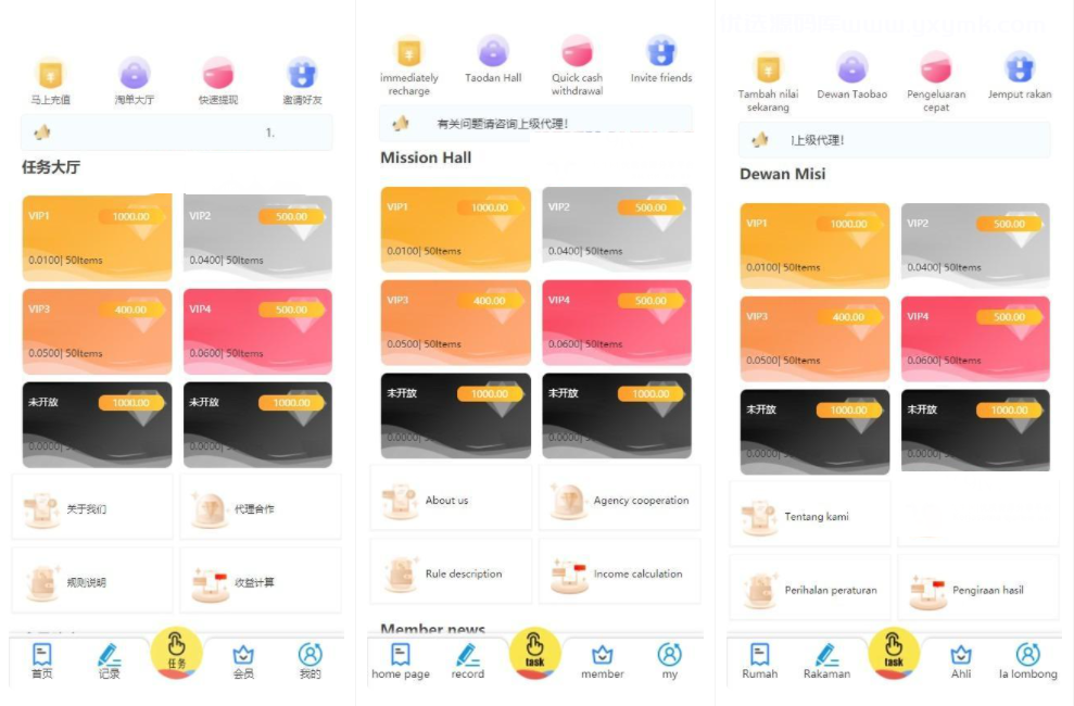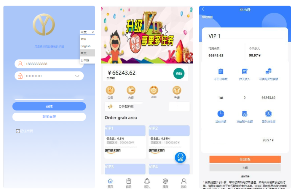 最新二开三语言( 中文、英语、马来语) 自动抢单系统源码。跟传统抢单大的区别就是平台取用第三方匹配平台,自动匹配订单,简单化了程序,效率更高,收益更高,使用户、商家,平台都有得益!
