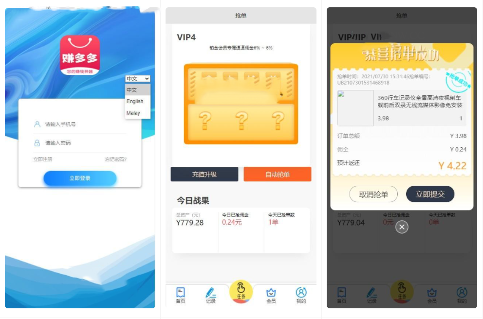 二开 三语言( 中文、英语、马来语) 自动抢单系统源码
