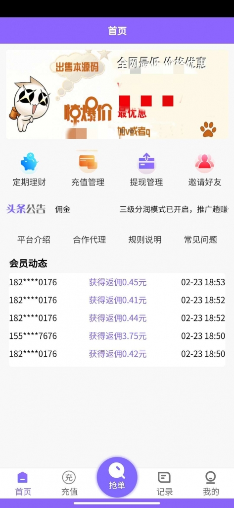 佣金是所抢金额的 0.31%,可抢订单金额是余额的 10-70%,每天可抢 70 单,抢单时间为每天 8-20 点。